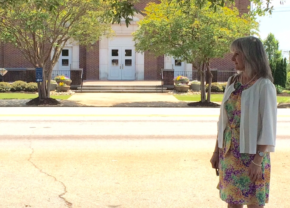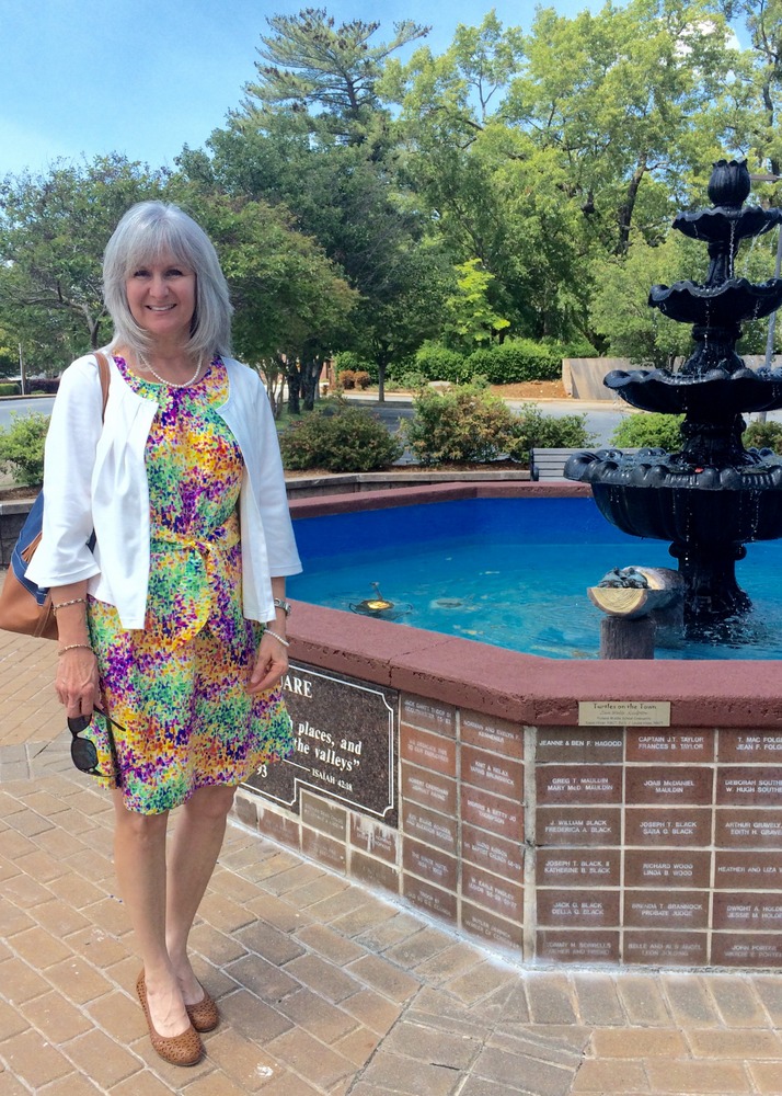 The church we attend is right on Main Street of our little town. I am standing by a pretty fountain, complete with turtle statuary, in the corner of our church's parking lot. Also known as 'Legacy Square', it is a popular gathering place for festivals and bluegrass music on the weekends. Statuaries of different turtle species have been placed all 'round town for folks to have a fun time seeking out, as a sort of scavenger hunt.
