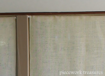 This project began with the thought of simply changing out the dated green matchstick blinds for updated matchstick blinds, but totaling over $700, the cost was prohibitive so that prompted 'thinking-outside-the-box'.
