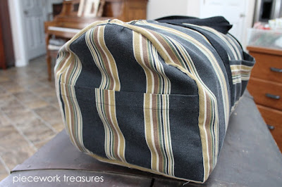 ....and some projects do not, like this duffel bag I recently completed for my husband, Tom, who needed a bag to hold his tennis shoes, change of clothes and water bottle for his 2 mile walks after work...