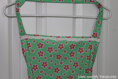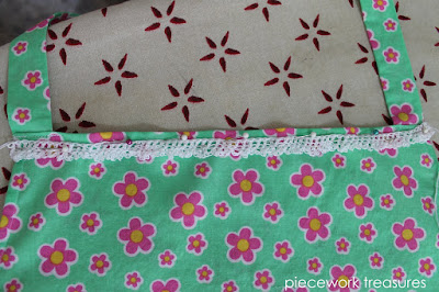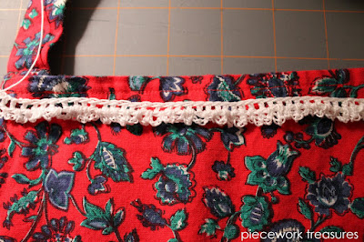 The instructions for the little lacy crochet trim I worked up for this apron will be printed in the next Piecework Treasures post; in the meantime, I hope my friend likes her apron as much as I enjoyed making it for her.