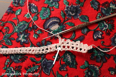 ...sewed seams through the straight edges of the crochet.... the seams literally disappeared into the lace trim.