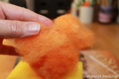 Decide how big you want your pumpkin to be and pull out that much fiber rolling it into the rough shape of a ball. It won't stay in that shape, but that's okay.