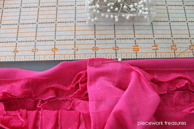 From this point, pin the straight edges together, right-sides together.  Be sure to not pin the ruffles, you don't want to sew in the ruffles.