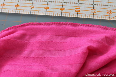 I set my machine on a Vari-Overlock stitch that is terrific for knits as it keeps the 'stretchiness', but use your zig-zag stitch if you don't have this option on your machine.   Even a straight-stitch would be 'okay'. I lengthened my stitch length just a little.