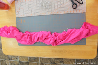 Sew a seam where you pinned.  Mine is about 1/4".  Again, be sure to get your ruffles out of the way of your needle.  You don't want to skew your ruffles by sewing through any of them.