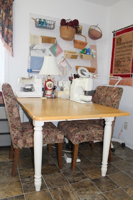 Can you tell this fringe was purchased in copious quantities years ago and incorporated into almost every window treatment I made?! Not only the photo above, that is currently not in use, but the view to the left in my sewing room....