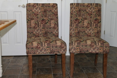 My chairs were meant to be slipcovered and were purchased at World Market on sale for @$86.00 each. The World Market slipcovers are $34.99 each if you wanted to buy one to fit this chair. But they looked loose fitting to me and thought this could be a challenge project for me.