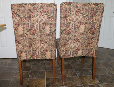 This tapestry fabric with a random, yet straight-lined design was perfect for slipcovering these chairs. I was able to use the design to my favor, it stretched well, yet doesn't sag.