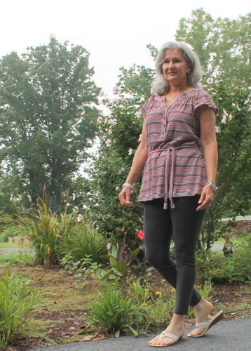 Leggings are rtw.Thought my Rose of Sharon's blooms are so pretty and has the colors of this shirt, that it'd make a nice background for this humid, overcast morning's photos. Hope everyone is having a good day!