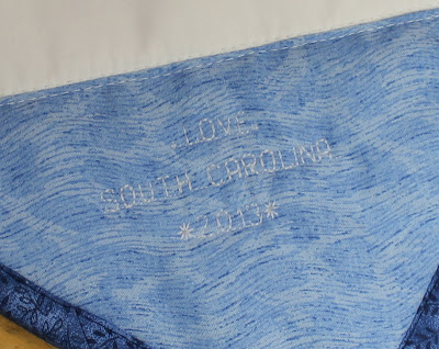 The label I stitched into the bottom corner says .LOVE. SOUTH CAROLINA *2013*