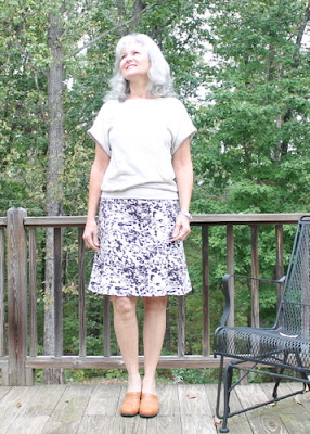 Completed a new outfit - sleeveless top and simple skirt. Now learning how to take a self-timed shot of myself and how to 'pose for the camera'. Kinda' fuzzy here and pose is a little 'off' - but it's an improvement over a garment hanging on a hanger!