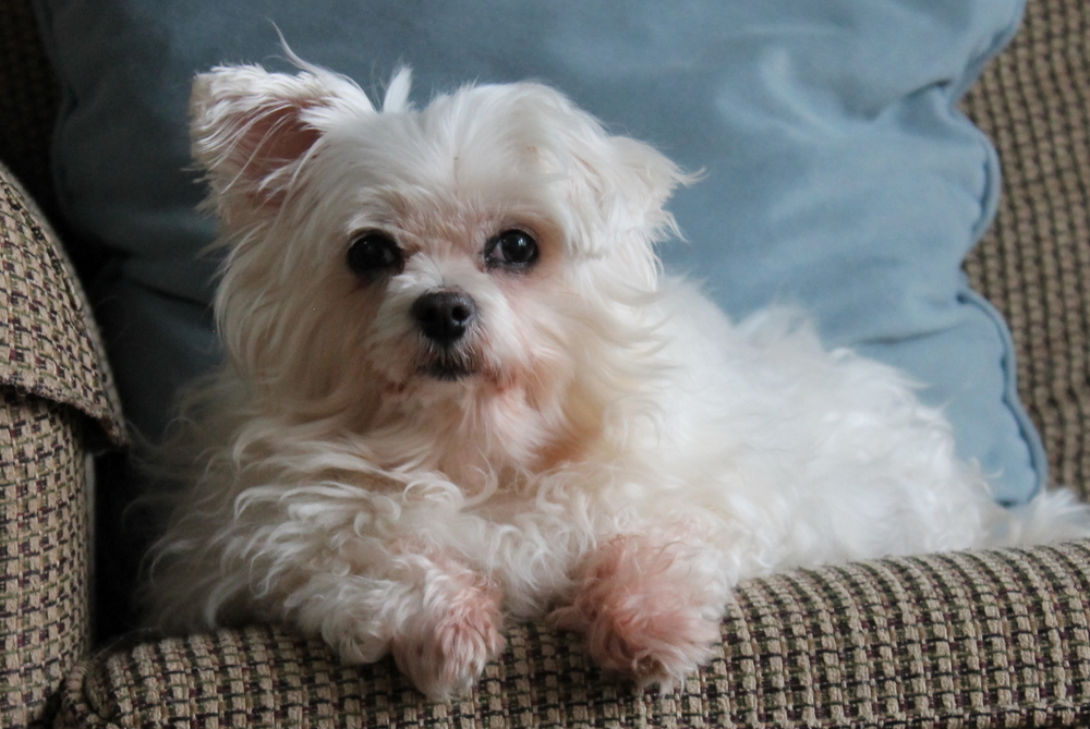 Towa's my one and only companion now as Gummy, the Cockatiel, did not last long in my sewing room.  The dust and dander she created was simply too much, so she's back in Melissa's room, where I think she feels more comfortable anyway.