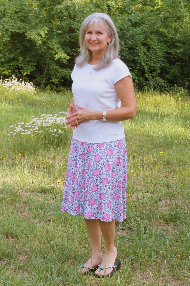 You guys are so sweet as I know you've gotta be tired of seeing the Kirsten Kimono Tee, but find myself wearing it again today with the dove gray NEWLOOK 6192 skirt.  To show my hardworking clothes, I took a shot loading my car with recyling and trash.  We live so far out in the country, there is no trash pickup, so we drive to a local Recycling Center (we call it 'the dump'!) where we take our trash, as well as our recycling materials.  We're big into recyling here.  As you already know, we even compost our kitchen scraps.  :)   Another hot, humid in the 90s kind of day.