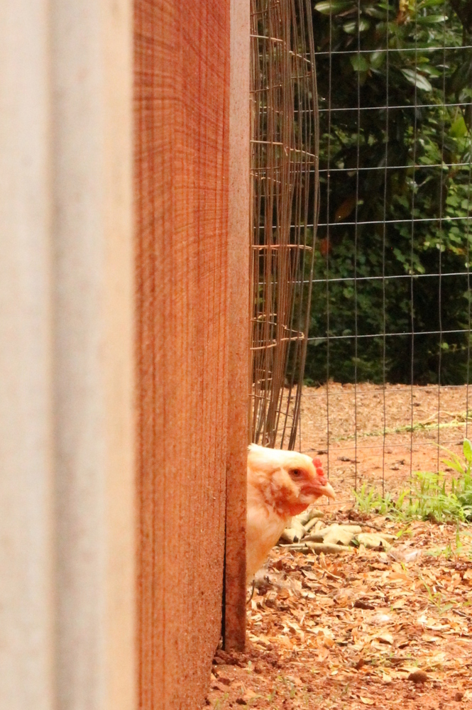 After I arrived back home, couldn't resist taking a picture of one of our silly hens.  She likes to hang her head out of the coop wire to make sure she doesn't miss a thing!!