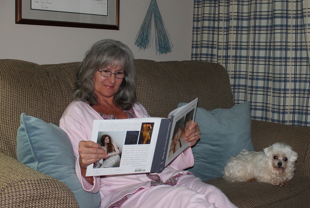 Today was a 'take it easy' kind of day laying out in the sun and almost became a no me-made day until I donned my comfy clothes after my shower this evening.  I'm planning my next Alabama Chanin outfit with my little companion here.  And yes, this is the autographed book I ordered recently.  They shipped it within an hour of my order and I received it in two days.  (I just checked and it is still on sale, I think through Mother's Day for $28.00... autographed.)