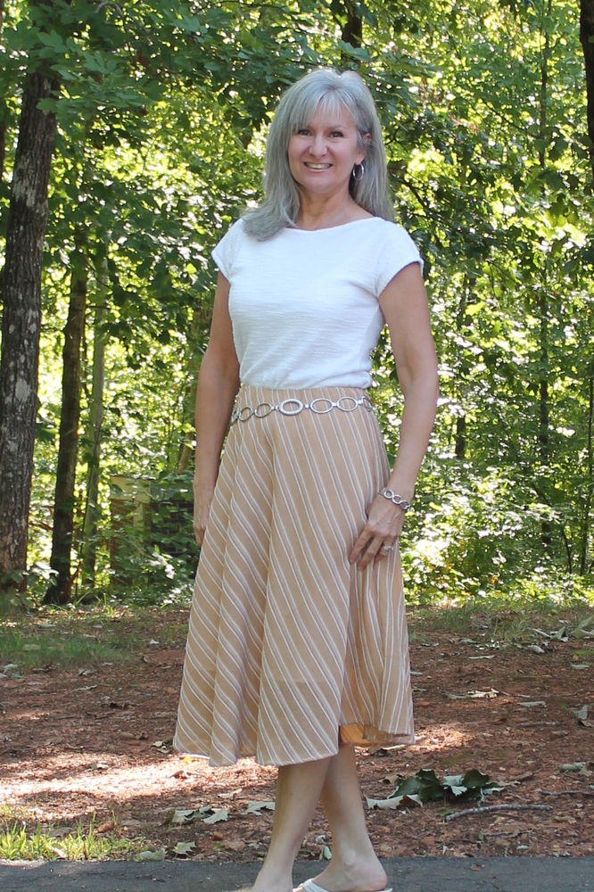 3. It's a lovely skirt. The stripe placement turned out so well! And I really like your elastic waist that doesn't look like an elastic waist, if you know what I mean. Your explanation of how you did it was so clear, I understood it perfectly. I'm going to have to borrow your method one of these days as I love wearing elastic waist skirts.