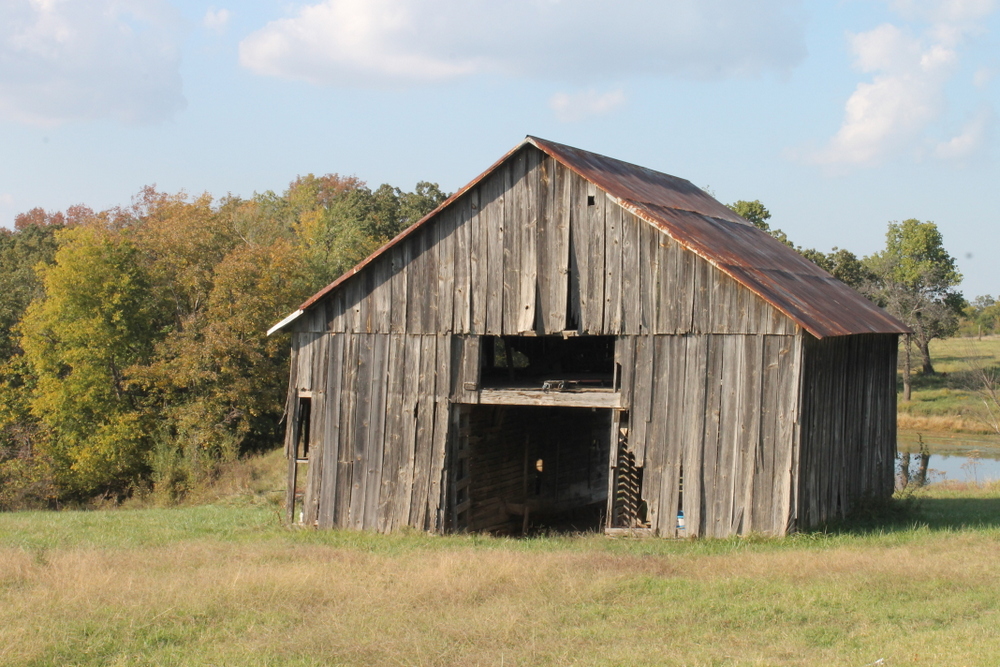 Tom and I have just returned from visiting my Oklahoma family.  We were lucky enough to be able to walk my great-grandparents' land that is no longer in the family, for me to snap a shot of the barn they built, with a little of the pond they dug in the background.  It was a beautiful, peaceful setting.  This trip was all about family......
