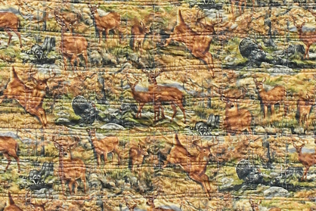 A closeup of the woodland print fabric..... I like it.  He likes deer so this should be perfect.