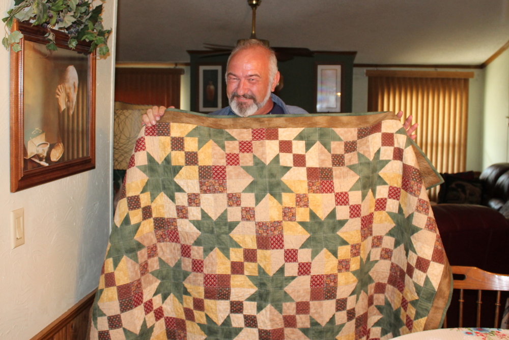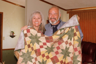 .... to find the 'Road to Oklahoma' quilt made specially for him.  Clifford has a kind and sensitive spirit and there were a few tears shed by all.