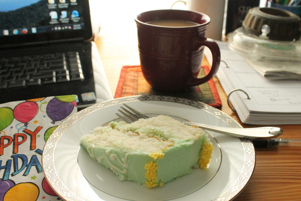 Who can resist a slice of birthday cake with their morning coffee?  Not me!