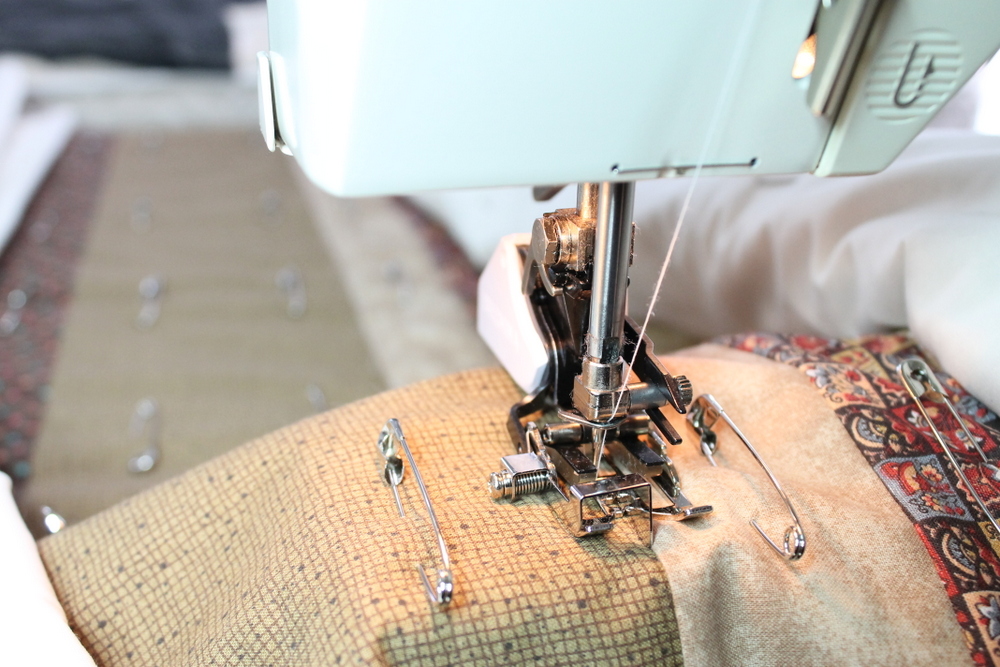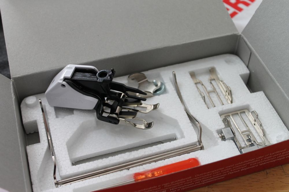 An action shot below! This walking foot set includes 3 different sole feet. This one I'm using below, is for stitching in the ditch and has an edge-stitch attachment, which makes it oh-so-easy to stitch-in-the ditch.