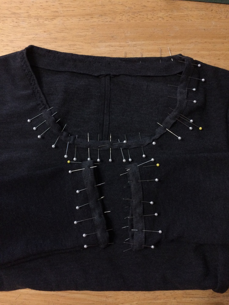 Charcoal gray knit photographs terribly, but I hope you can see some of the detail in the photo below. I did not add a 'band' to the bottom hem, just turned the fabric under, marked the depth of my stitching and hand-stitched herringbone stitches all 'round, then cut the excess inside fabric off. This small, seemingly insignificant addition, finishes the little top off nicely to me.