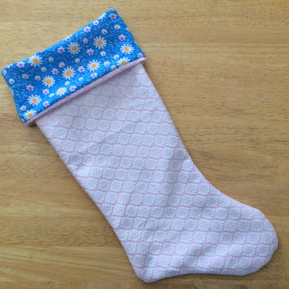 With this pattern, it is a truly lined stocking whose top is simply turned down for the 'cuff'. But what I did not realize until EVERYTHING was cut out and ready to be stitched.... is there's no place to sew in a hanging loop. My little oh-so-quick-n-easy project screeched to a halt at this point as I pondered the loop problem. Pinned a few other Christmas stocking tutorials after finding out that I could've cut the cuff separately and when stitching it to the top in the last step of construction, you can sew in a loop then. Well, well, well. Seeing as it's now a mere 8 days away from Christmas Eve and my little stocking holders have been sitting empty waiting to hold their appointed stockings, I just moved forward sewing the stockings together as I'd originally planned and figured I'd worry about the loop later.