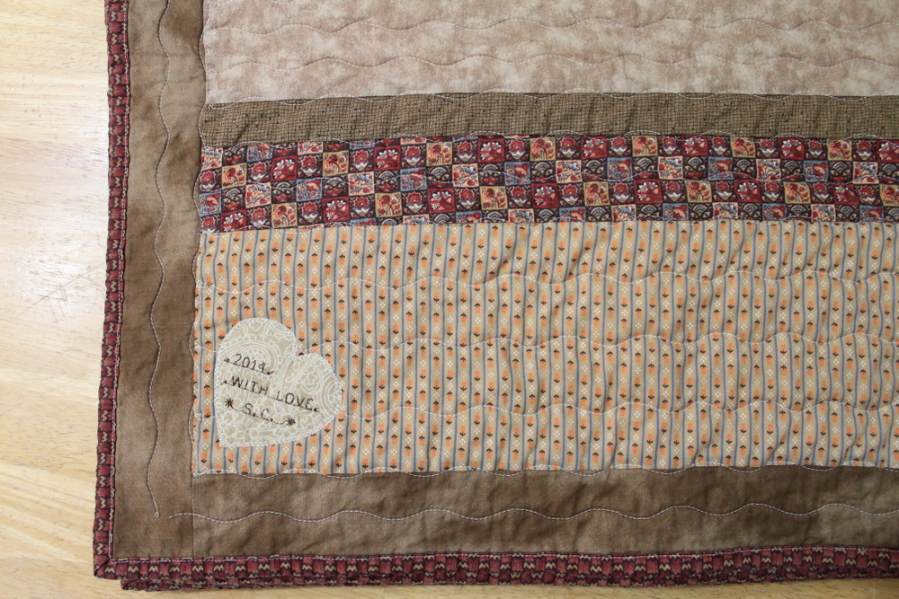 With all the changes associated with the backing material and label, in the end blanket-stitched the label to one of the front corners.