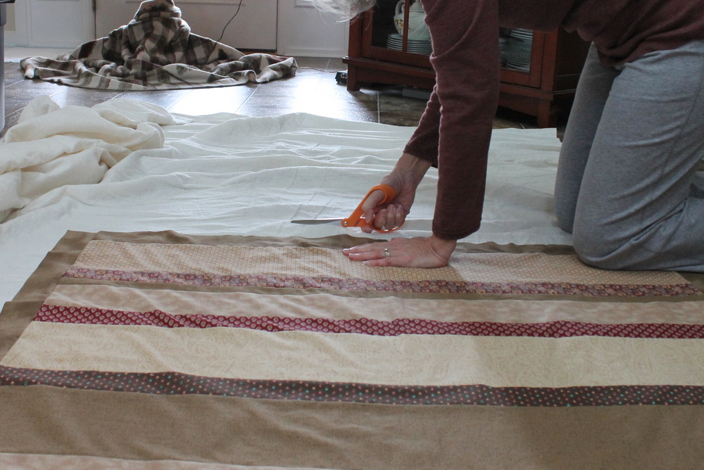 Then I realized I did not have enough Warm & Natural 100% cotton batting that I have used in every quilt I've made to date, and thought I'd purchased enough for this one.  I love that stuff!  But 'beggars can't be choosers', so to speak, so Fairfield's Soft & Toasty it is for this quilt as that's all my little local Wal-Mart carries.  I do not like it anywhere near as much as the Warm & Natural.  It seems flimsier and thinner.  But it is 100% cotton, and that's a good thing.