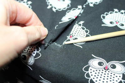 The shirt was not quite done by her birthday and am glad I showed her where I was at with it, as she was able to tell me how she wanted it finished.  Below you can see the simple sleeve she wanted.  She did not want the roll up sleeve with button closure, so this part was really easy.  There may have been a squeal heard when she saw the owl print.  :)