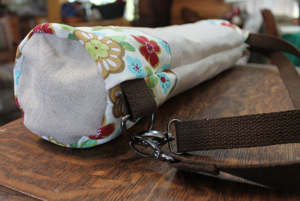 Heavy weight natural canvas with flowery duck canvas along with cotton webbing for the straps with a little hardware for ruggedness makes this a perfect tripod carrier.  I reinforced all the fabric with stiff interfacing that is normally used for bags.  At first I was concerned it was too 'stiff', but seems 'just right'.  I wanted this bag to have body and shape.