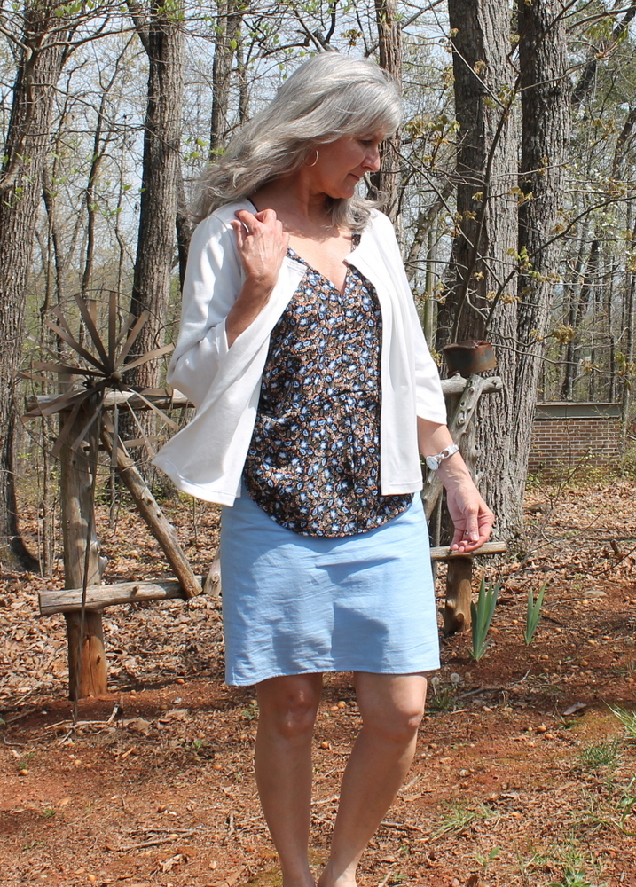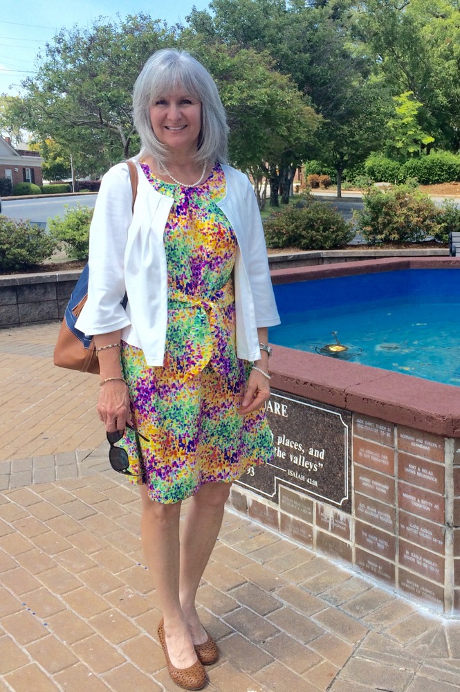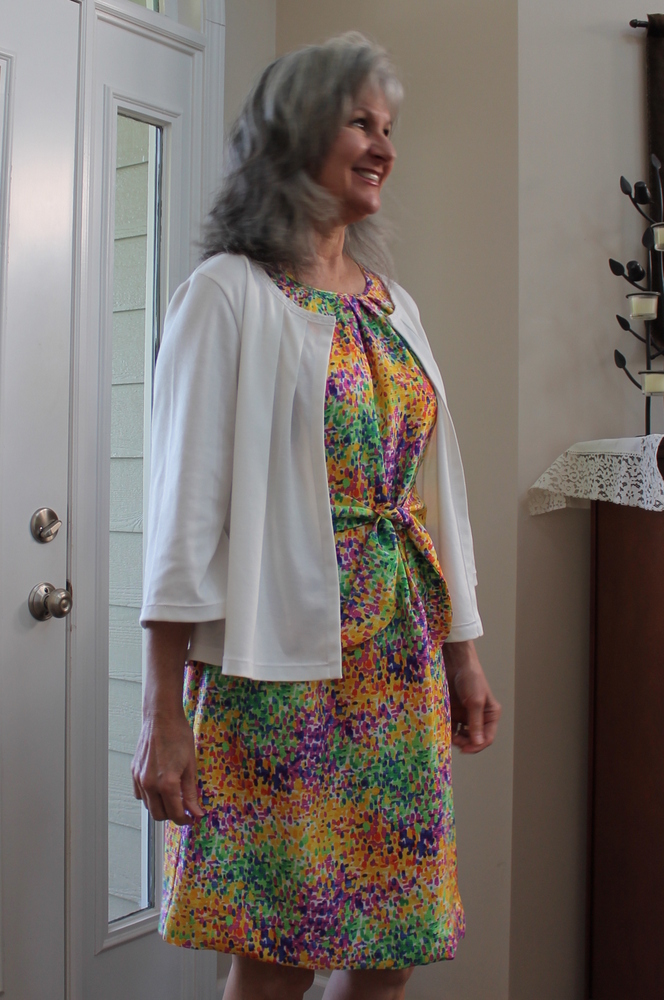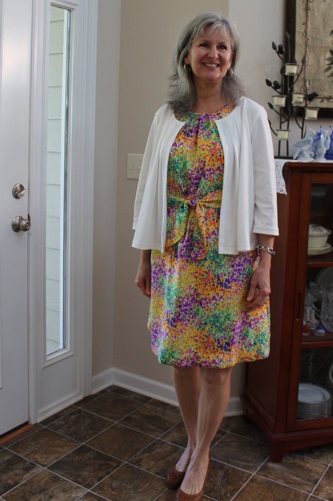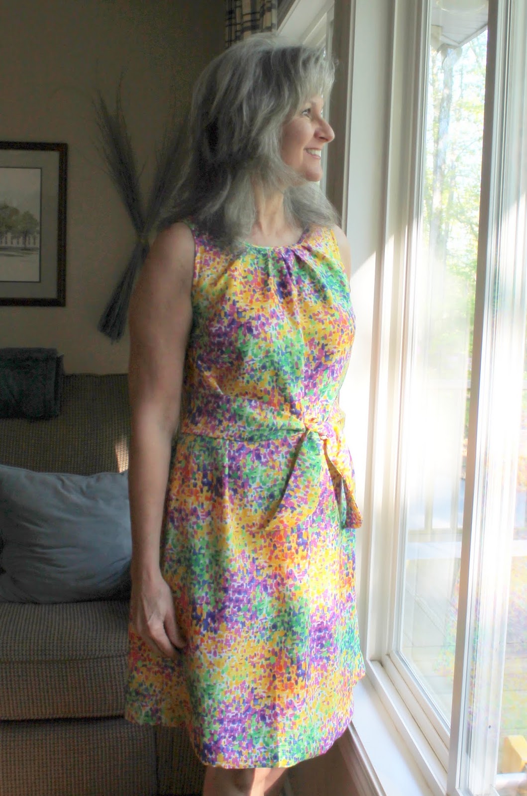 I was so afraid this dress might look like a tent, but it looks anything but!  Even without the belt, the dress is pretty.  So don't be afraid of trying a new type of pattern.  You might be surprised at the outcome!