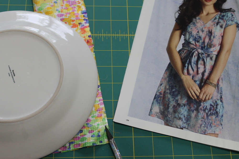 Cut fabric 6" wide by @44" long.  Tapered ends by tracing around plate.  Vogue 1395, to the right in the photo below, looks cute.