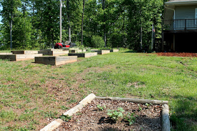 We put in a sizeable vegetable garden every year and tend 12 - 4' x 8' raised beds (upper right, photo below), an in-ground pumpkin patch (foreground, photo below) and a 20' x 40' in-ground bed nearer the house (upper left, photo below). Some years we put in a 30' x 60' corn patch, but not sure we'll be doing that this year as each year has been a big fail, coupled with a LOT of work. Seems easier to buy our corn from a local farmer. :)