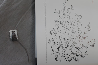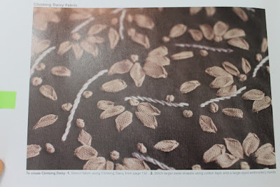 This is from the page in her book showing the Climbing Daisy design embroidered with her 100% 5mm cotton tape. So love this, but she is out of stock of the pewter cotton tape and ya' know... monotone theme..... so will go with embroidery thread.