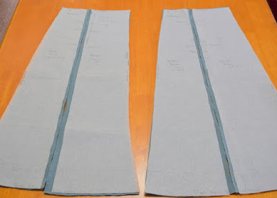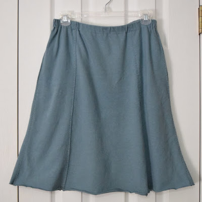 Pocket bags were serged because I used a woven and did not want them to fray. Worried about having enough room at the hips for the pockets, and knowing I shortened the 4-panel skirt 2" at the hemline.... instead of taking the 2" off at the hem on this skirt, I took the 2" off at the waist which made for a little more room for the pockets.
