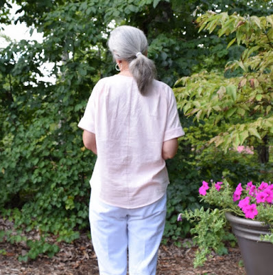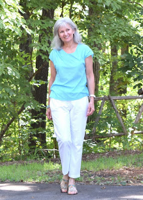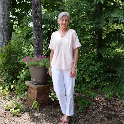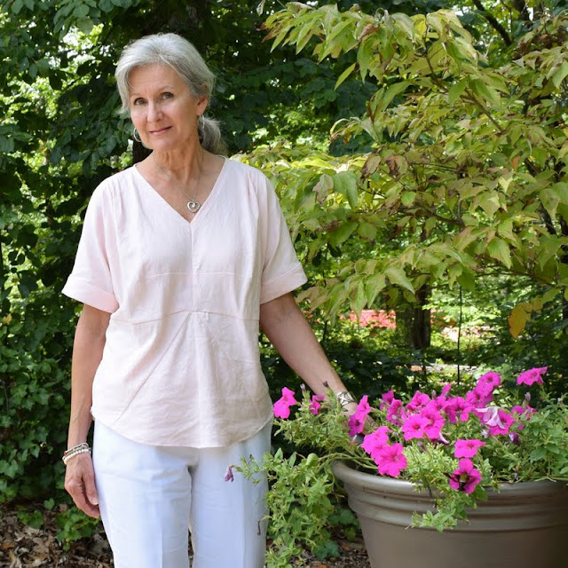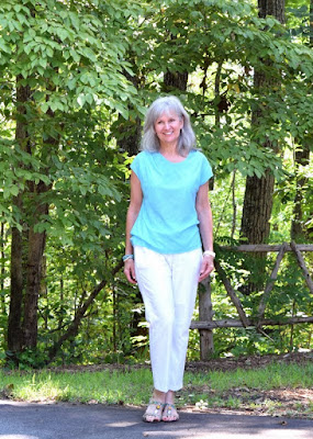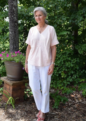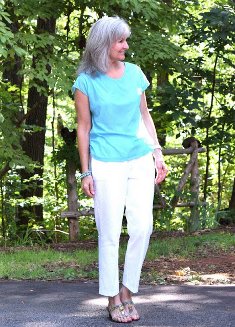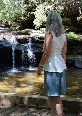 I'm wearing my Alabama Chanin hand-stitched modified 6-panel skirt along with the AC hand-stitched 6-panel Tank Top. Interesting in that I made these pieces to be an ensemble, but now they are made I don't really care for them together. But today I am showing them as the ensemble they were meant to be.