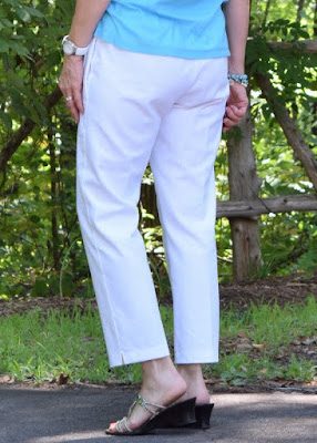 And it worked out well. Almost all is hand-stitched with Coats and Clark Button Craft thread.... double strands for inner construction stitches, and single strand for the flat-felled seams with machine-stitched turned down casing for 1" elastic at the waist.