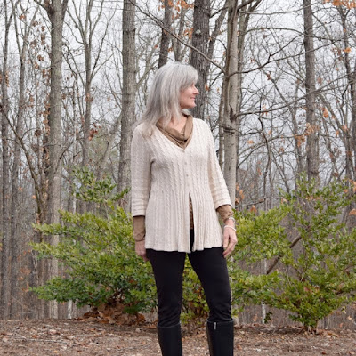 Trying to show you the drapey cowl turtleneck here.  It just sort of flops drapes into shape.  :)