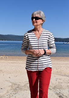 You can get the links to Ottobre's Etsy shop from the earlier post on my first version of this cute top here.  Sometimes she has back issues you can order there.  But since a lot of this is redundant information, I'll just summarize today.  For some strange reason I only purchased 1 1/2 yards of the ultrasuede, so this top was shortened by 5" and the sleeves were shortened by 2".  Whyever I did that, I do not know.... but was able to squeeze this top out of that mere yardage purchased for $5.42/yard so a total of $8.13 for a gorgeous, drapey, comfy ultrasuede top.  That's a win all 'round in my book!