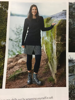 Thought it's be fun to show you Ottobre's photo (bottom left) of the exact same outfit I have on.  Leggings, top and skirt.  Am planning a black cardi to sort of pull mine together for those colder days.