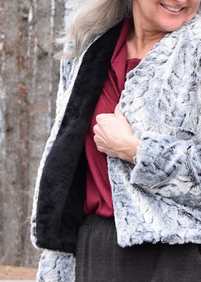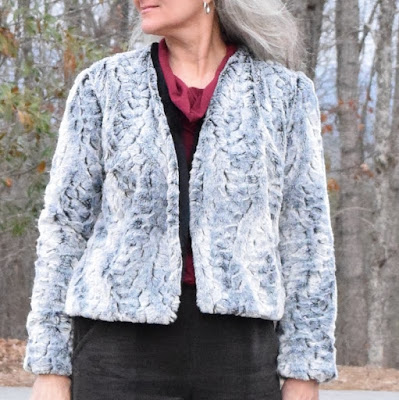 .....and think mine copies Burda's inspiration photo pretty well. Only needing 1 1/2 yards of 55"/60" wide fabric, it is an economical faux fur jacket to make.