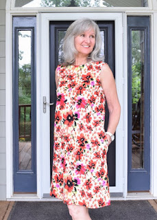 This rayon challis drapes nicely. A little stiffer than the earlier floral challis, but that's okay as I really like the overall look. Love the rounded hem on this top.