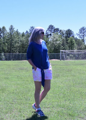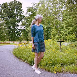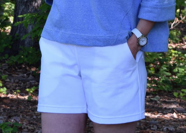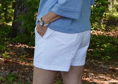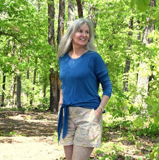 And in all these photos you've seen so far, the top is worn with a new pair of Itch to Stitch Belize Shorts. I've tweaked the pattern a little more and feel I've got an even better fit with this pair. My daughter gave me this yummy fabric for my birthday and told me she envisioned it as a pair of shorts for me. She gave me 4 yards. :)