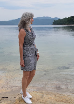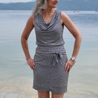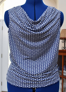 This particular top was made specifically to go with the recently made Megan Nielsen Axel Skirt I blogged about here. After making this super cute form-fitting skirt, there was nary a top in my closet that would well with the skirt. Wanting to honor the skirt, realized I had enough material left over to make a top and one thing led to another upon deciding this sleeveless cowl top might work. And it works perfectly all nice and tucked in and gives this ensemble of separates more of a one-piece 'dress' look.
