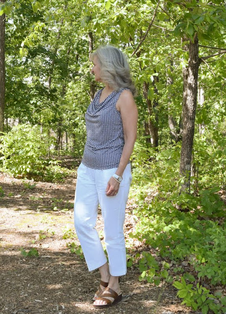 With a hot, humid Summer on the horizon, a sleeveless top always suits. Particularly a sleeveless cowl top that has an easy-going, easy-wearing, yet classic look that can be dressed up or down.