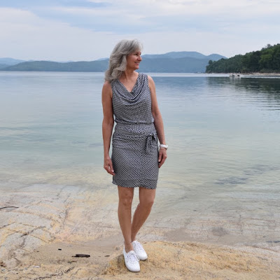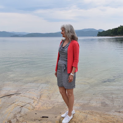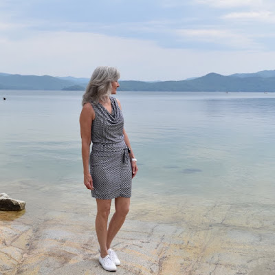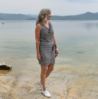 This is a super form fitting outfit for me, so thought it might be fun to accentuate the sporty look with a pair of white Keds and felt right at home and at ease at the Lake this morning.
