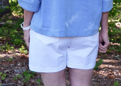 White brushed twill cotton fabric came from my local Wal-Mart, and was surprised that the pockets can be seen through the fabric. Not gonna' let that bother me, as this pair is so comfy and they are white! And white will go with e-v-e-r-y-t-h-i-n-g this summer! Kept this photo a little darker so the pocket bags could be seen a little clearer.