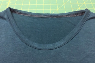 I also stabilized the back neckline with a strip of binding as I do not want this neckline to stretch out. Also it sort of finishes everything off nice and neat on the inside. Seams are stitched then serged.