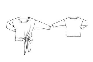 If you don't have access to the magazine, that's okay because all the patterns are listed at the www.burdastyle.com website. I love this site! As I am making more Burda patterns, I have become more active at this website and enjoy the interaction with the other lovely talented ladies there. In fact, Elpida and Ellen's versions of this top convinced me to make this 'now' than 'later'. Hmmm, looking at their cute tops as I insert these links it seems their knit fabrics must've been a little thicker and less stretchy than mine as their 'knots' aren't hanging down as far as mine is. Oh well. Anyway, you can view all the specs, and even purchase this pattern here.